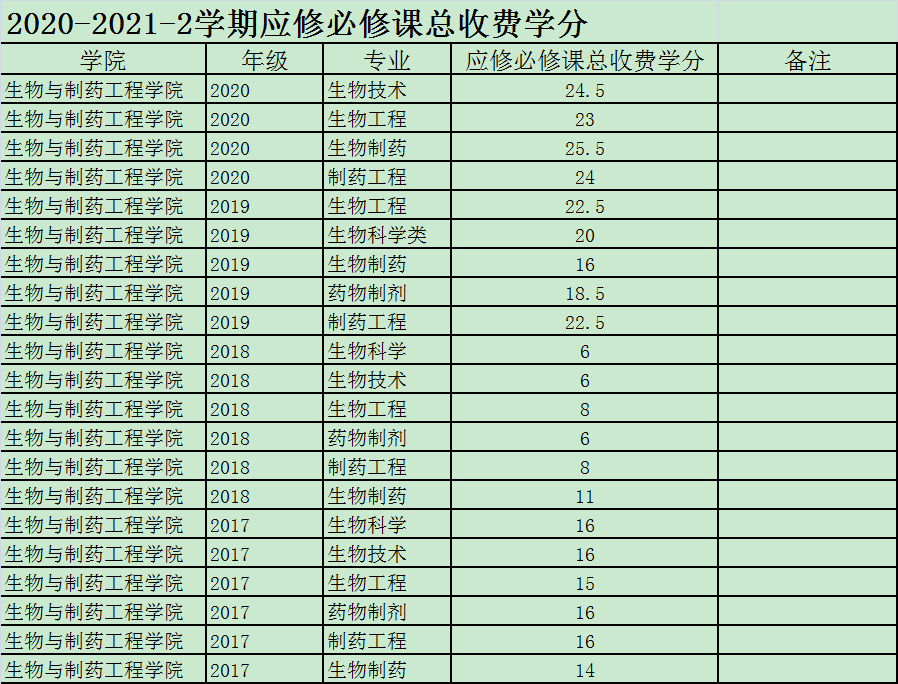 2.2020-2021-2学期应修必修课总收费学分。
