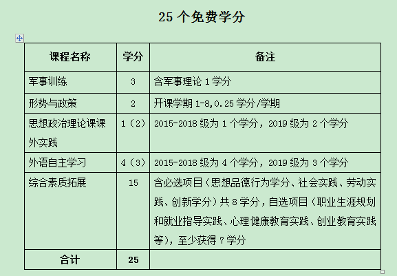 注意有以下课程属于免费学分,不收费: