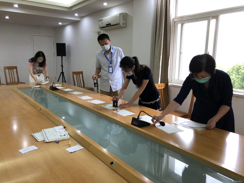 公司老师们主动请缨,以徐凌云、丁洪波为首的多名老师主动承担起352名员工的毕业证、学位证的制证工作。他们顶着盛夏、冒着大雨来到公司,亲手为全体毕业生的毕业证、学位证贴上照片,盖好印章,将一份份资料装入公司精心制作的手提袋里。大疫无情,生工有爱,“临行密密缝,意恐迟迟归”,一张张照片、一个个印章,印刻的是全体教师对员工的不舍和祝福。老师们纷纷用行动践行着教育初心与无私服务的理念,在特殊时期传递着“教育是用生命影响生命”的大爱精神。