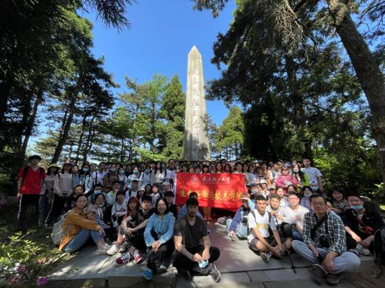 5月9 日的实习中,员工经由好汉坡一线下行,实地调研庐山植被垂直梯度分布情况。途经庐山抗战纪念碑,锦绣杜鹃在侧,在讲解植被分布特征后,师生就地开展课程思政教育。1937年6至7月,周恩来率中共代表团两次上庐山与蒋介石进行第二次国共合作谈判。当年7月17日,蒋介石在此发表了“抗战宣言”, 吹响了全民族抗战号角。在刻有“捍国护民、浩气长存”的石碑下,实习队伍曾万勇老师为生科学子介绍了庐山在中国人民抗日战争中的重要地位,带领同学们瞻仰先人精神,继承烈士遗志,鼓励大家争做中华脊梁。