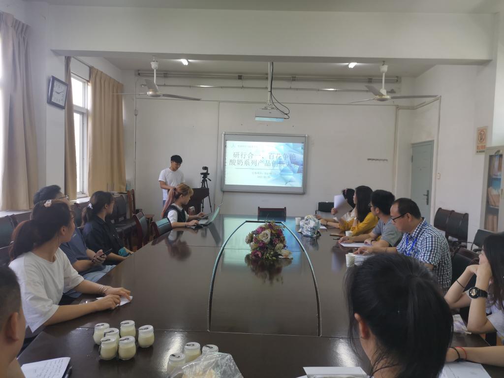6月28日上午,“研行合一、百花争研”研究生酸奶系列产品创新大赛在Beats365唯一官网入口506会议室圆满举办。本次比赛由研究生处主办,Beats365唯一官网入口承办。大赛旨在贯彻落实国民营养计划,鼓励新一代生科人积极创新和开发营养、健康、美味食品,应用科技创新健康生活,为健康中国贡献力量。经过初赛和复赛选拨,共4支队伍进入决赛。决赛邀请了王璋倩副教授、廖卫芳老师、郑自强老师、田宇老师担任评委。