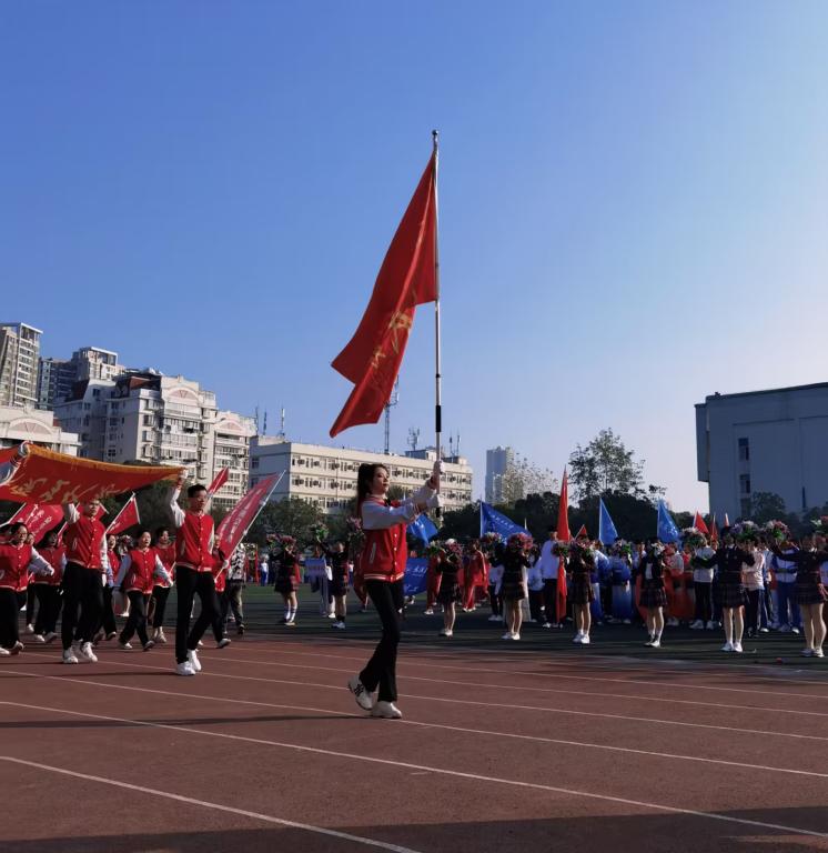 开幕式上,伴随着激昂的国歌响起,全体师生庄严肃穆奏唱国歌,看着五星红旗在暖阳下缓缓升起,各公司方阵迈着整齐有力的步伐队列入场,他们青春正在,英姿飒爽,展现了轻工大学子朝气蓬勃、奋发向上的精神面貌。