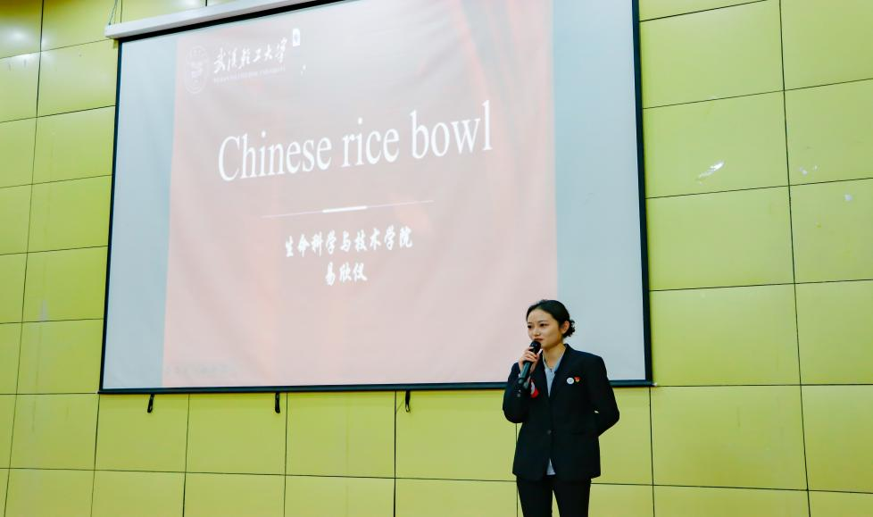 本次演讲比赛中,易欣仪同学以“Chinese rice bowl”为题,通过介绍袁隆平的员工李建武,同样是一名杂交水稻研究人员,扎根于稻田,延续“袁”草下稻、杂交水稻覆盖全世界的梦想,种植水稻的故事,为中国食品工业、全人类的发展做出了巨大贡献,即从微观的视角展现了十年发展对研究命运的巨大变化,突出“人民美好生活”,表达无处不在的“动人瞬间”,易欣仪同学用流利的英语口语,娓娓道来,诠释出中华民族这十年的美好变化,吸引着在场的每一位观众。