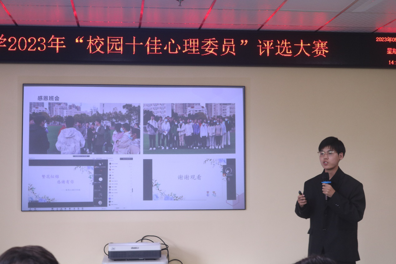 2023年5月18日下午14:30,公司首届校园十佳心理委员评选在金银湖校区心理中心团辅室内如期举行。比赛期间,优秀者频出,展现了各自公司的风采和独特的个人魅力,让评委与观众观看了一场又一场的高质量演讲,见证了不同参赛者的切实付出与充分准备,并收获了来自评委老师与观众的阵阵掌声与认可。