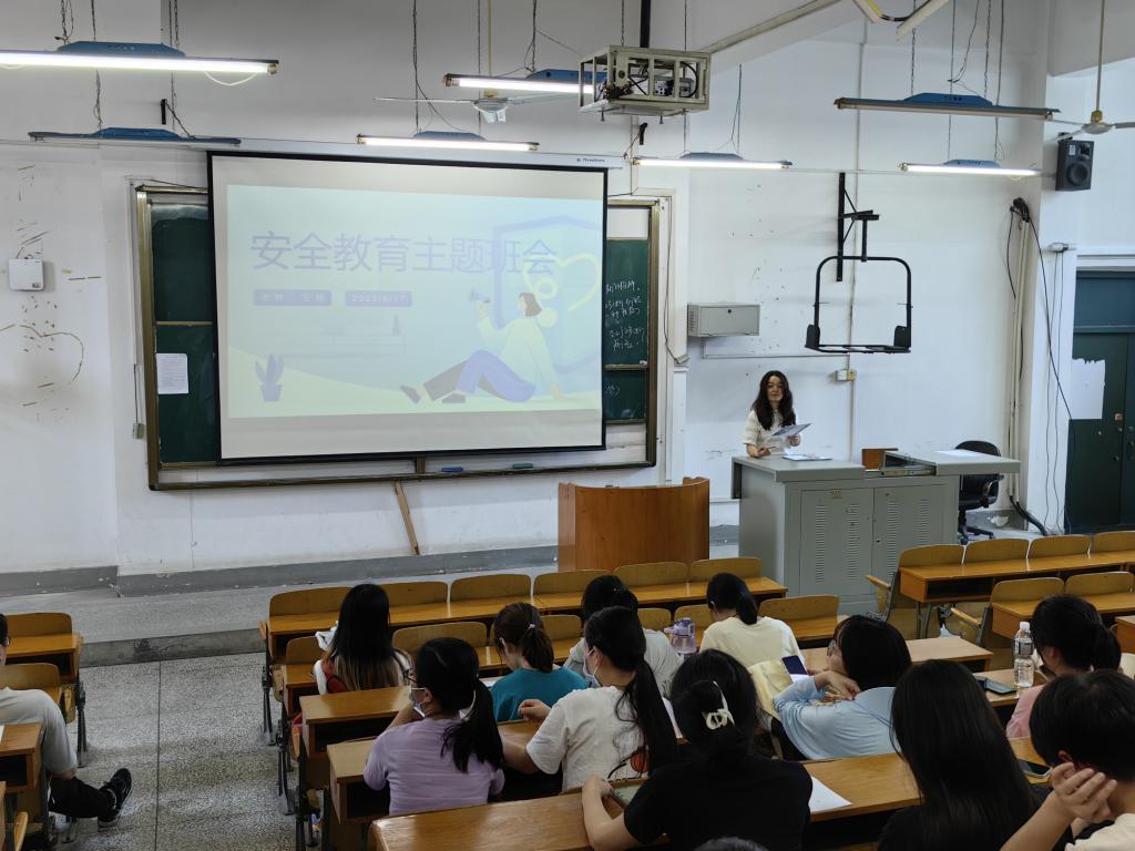 在会上,王悦老师从留校安全、实验室安全和假期安全三方面向同学们强调了暑期安全的具体事项。对于留校安全,王悦老师提醒同学们要注意寝室用电防火,离开寝室是需要关闭电源,不要使用违规电器,要注意自己的财产安全以及防止网络诈骗,提高自我保护意识。对于实验室安全,她强调,要谨遵实验室安全守则,注意实验操作规范以及实验室水电安全,同时要注意消防安全,保证自己在实验过程中的安全。对于假期安全方面,王悦老师仔细叮嘱同学们要在平时注意交通安全,遵守交通规则;预防溺水、中暑和触电等事件的发生,在炎热的天气中要注意自己的作息和健康情况,合理安排好自己的暑期。