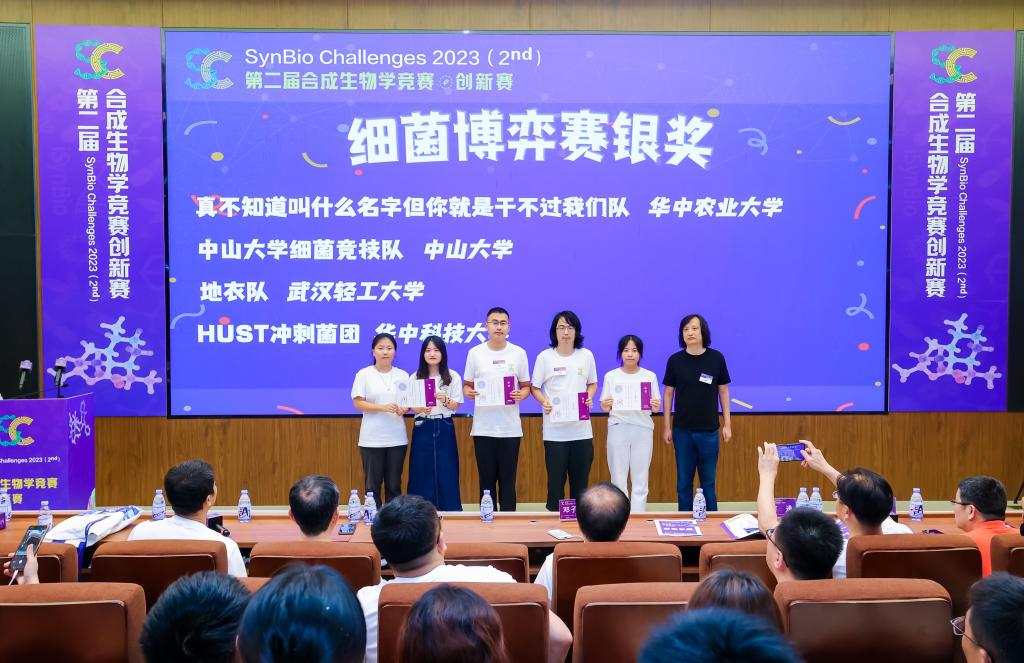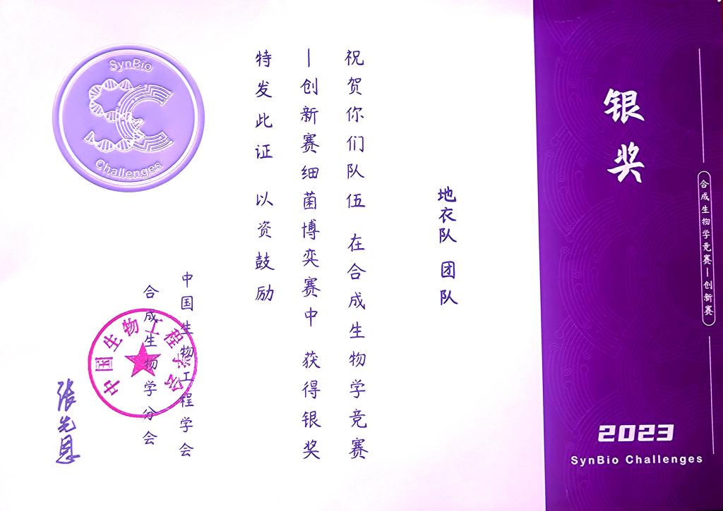 近日,由中国生物工程学会合成生物学分会主办的第二届合成生物学竞赛·创新赛上传来好消息,Beats365唯一官网入口由张美洲老师指导,张金睿、黎语堂、杨思思、李嘉奕四名员工组成的代表队——地衣队,参加大设施赛——细菌博弈赛赛道,取得了银奖的优异成绩。这是公司师生首次参加该项赛事并获得奖项,并与华中科技大学、中山大学、华中农业大学等公司的学子站在了同一领奖台上。