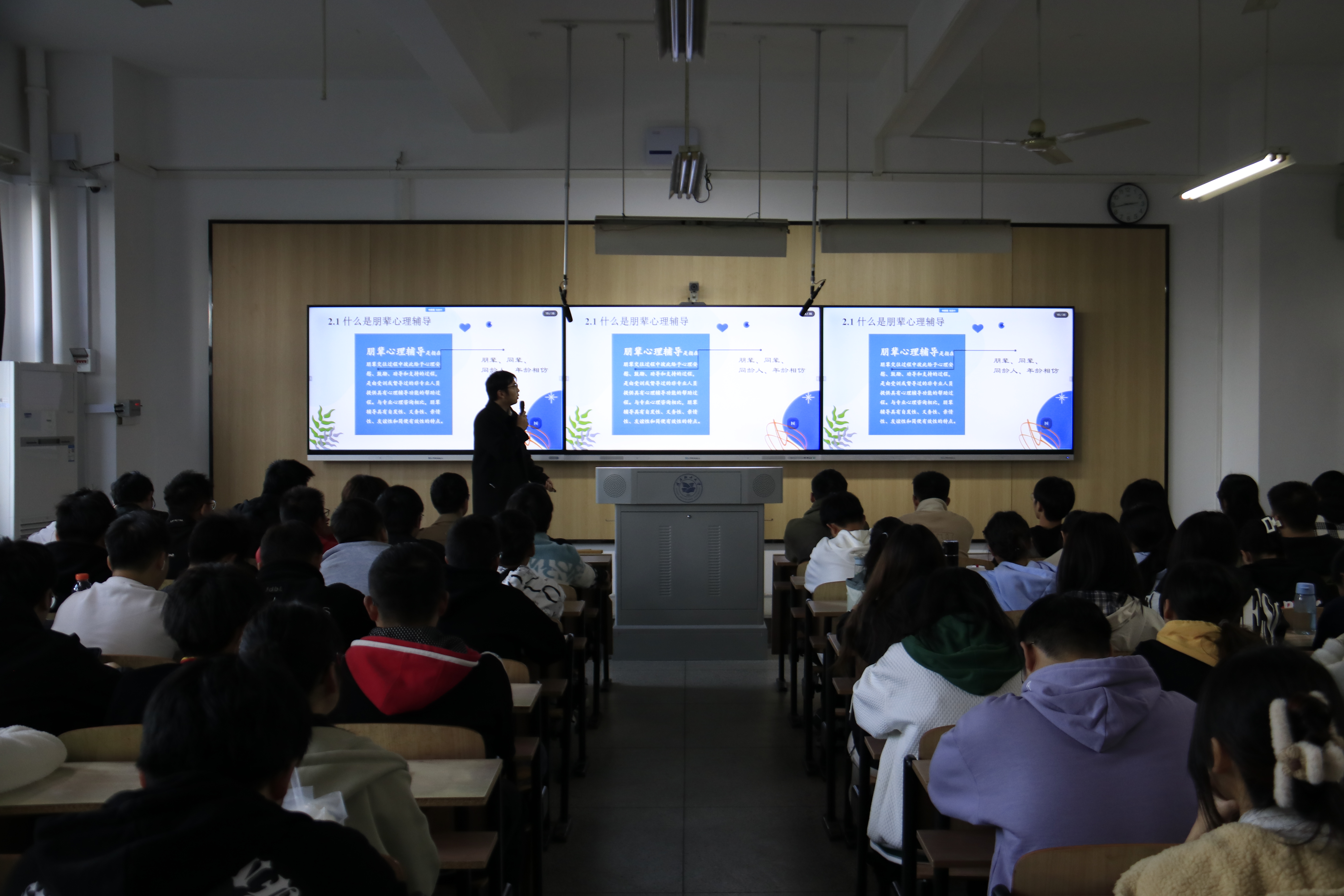 为进一步加强心理健康教育四级工作体系建设,将心理健康教育工作落实到班级或实验室,促进员工朋辈心理互助,2023年11月23日,Beats365唯一官网入口开展了“一份关怀,一份陪伴”为主题的心理专题培训。研究生辅导员王悦、员工会主席何傲天、本科各年级寝室长、心理委员等等200余人参加了此次活动。