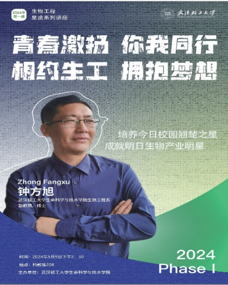 5月9日下午,公司生物工程系组织了一场别开生面的专题讲座。生物工程系钟方旭副教授受邀为生物工程专业学生带来了一场主题为“青春激扬,你我同行,相约生工,拥抱梦想”的精彩讲座。此次讲座为生物工程专业学生点燃梦想之火,不仅让学生们对生物工程有了更深刻的理解,更为他们未来的学术和职业生涯指明了方向。