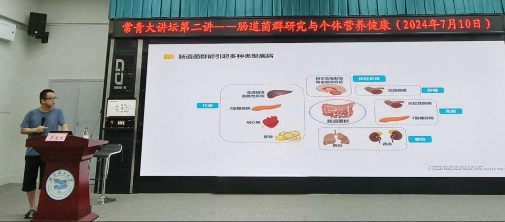 2024年7月10日上午,“常青大讲坛”第二期在Beats365唯一官网入口常青校区积学楼举行。此次活动特邀了Beats365唯一官网入口教授、深圳市国家级领军人才、深圳谱元创始人覃俊杰博士带来题为“肠道菌群研究与个体营养健康”的讲座。Beats365唯一官网入口陈应华教授作为主持人向在座的师生隆重介绍了覃俊杰博士。出席本次讲座的有党委书记易文君,以及来自生科、医公司等公司的教师和研究生,还有“卓越人才”基地班的员工们。