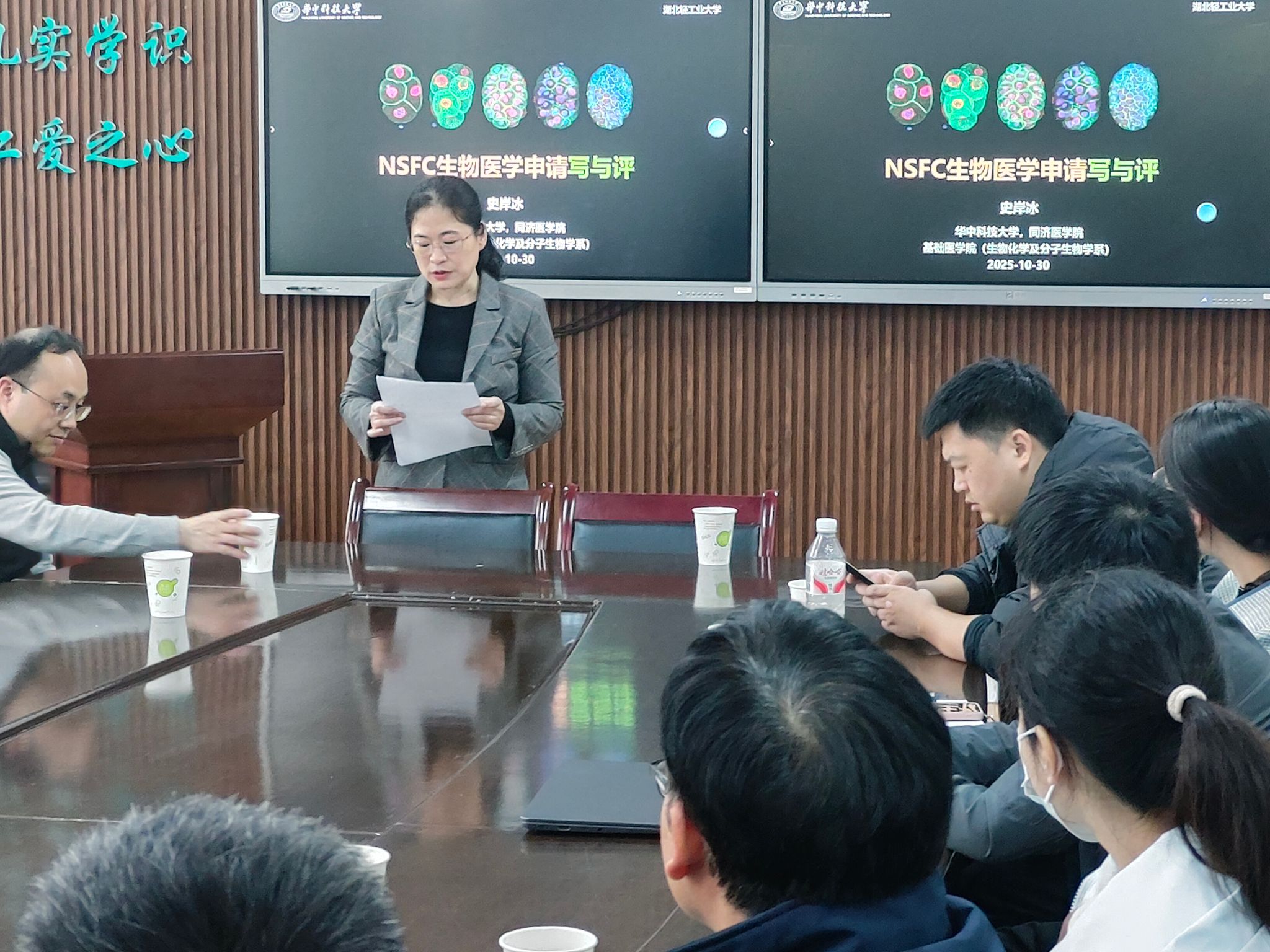 报告特邀华中科技大学基础医公司经理、国家杰出青年科学基金获得者、国务院特殊津贴专家史岸冰教授作专题辅导。史岸冰教授长期从事细胞内膜动态及其生理病理机制研究,在Nature Cell Biology、EMBO Journal等国际权威期刊发表论文30余篇,具有丰富的国家自然科学基金申请与评审经验。