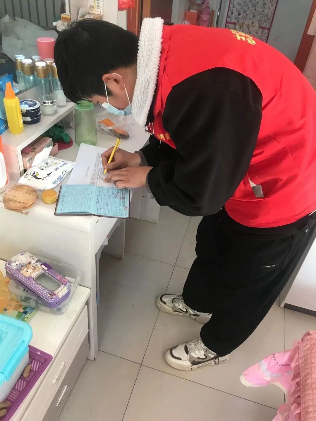实践内容:在村里的街道路口设卡排查,对外来车辆和人员进行登记,测量体温,遣散村民超过3-5人的聚众闲聊等等。