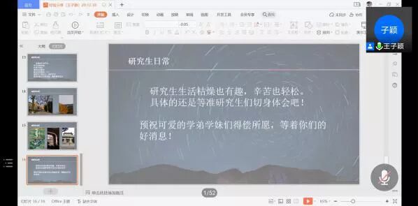 12月18日晚,生工公司2020优秀员工考研交流会通过线上形式在腾讯会议上开展。优秀员工王文琪、王子颖和龙宇为广大员工分享了她们的宝贵经验。