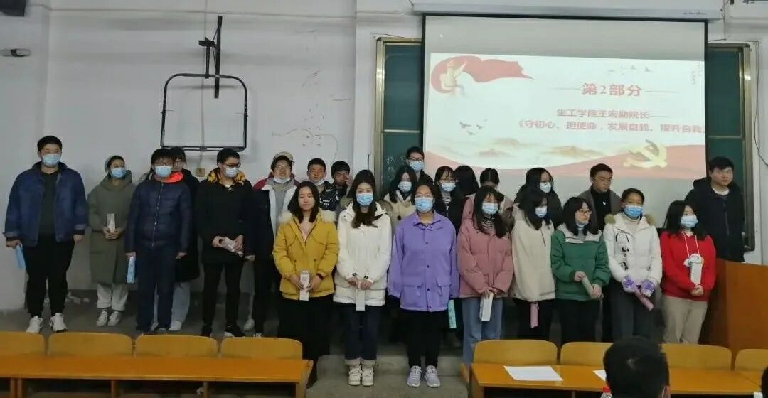 会议上,王宏勋经理为生工公司四个员工党支部上了一堂题为《守初心、担使命,发展自我,提升自我》的党课。王经理首先提出“初心是什么”这一话题,引导同学们思考,之后分别从的党员身份和老员工身份的角度,详细讲解了“守初心”、“担使命”、“发展自我”、“提升自我”四个方面内容,并通过分享疫情期间“90后”勇担重任、冲锋在前等先进事例,带领同学们回忆加入中国共产党进入大学时的初心,明确作为党员和生物专业老员工所肩负的使命,并以登山为喻,提出了“大学四年应该形成正确的人生观和价值观,练好与自己专业相关的本领”等宝贵建议。