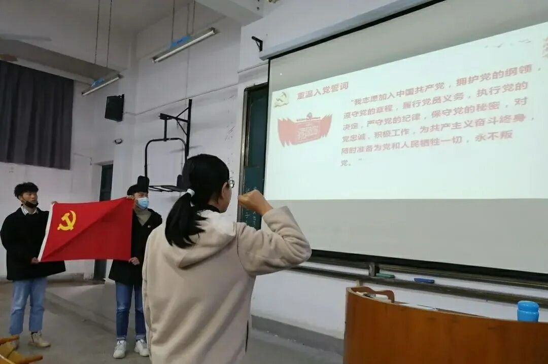 会议开始,高坤老师带领支部成员重温入党誓词。