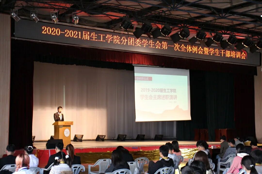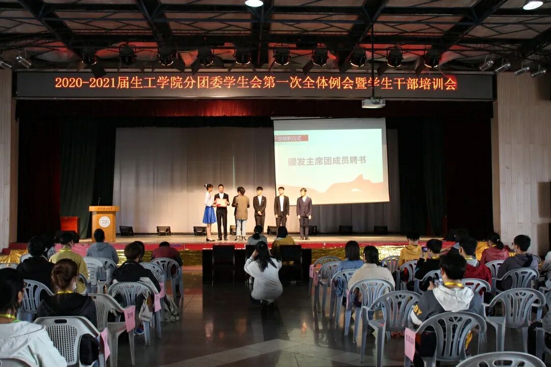 会议之初,进行了2020-2021届分团委、员工会干部就职仪式,由上届的优秀员工干部秦晋学长进行述职报告,回顾上届员工会的成就也指出存在的不足。同时勉励新一届的员工会成员为组织的建设贡献自己的力量。随后主持人宣读了新一届生工公司分团委员工会员工干部名单,并由生工公司老师为其颁发聘书。一份聘书亦是一份责任,老师在颁发聘书时,也不忘鼓励每位干部。