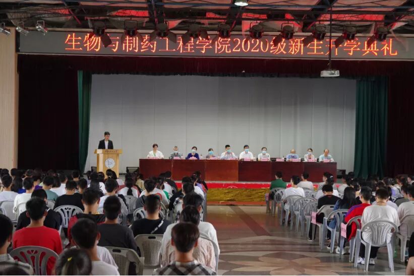 盼望着,盼望着,2020级新生终于如约来到了校园。9月30日下午,生物与制药工程公司2020级新生开学典礼于常青校区老员工活动中心隆重举行。莅临本次大会的嘉宾有:生工公司党委书记易文君、经理王宏勋、党委副书记陈丹、副经理杨江科、曾万勇、经理助理王丽梅、院办公室主任周林萍、院实验教学管理中心主任刘晓红、生物工程系主任缪礼鸿、生物技术专业负责人闫达中、制药工程系主任徐燃、生物制药系主任张军林以及生工公司办公室老师及学工办全体辅导员老师。