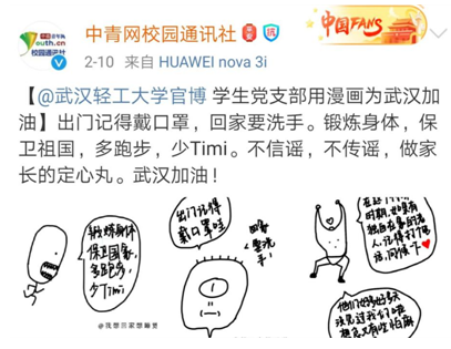 中国青年网2月10日讯,“员工党支部用漫画为武汉加油”,面对疫情,公司生物专业员工党支部第一时间开展艺术战“疫”创作,用漫画作品传递正确防护方法,致敬城市最美逆行者。