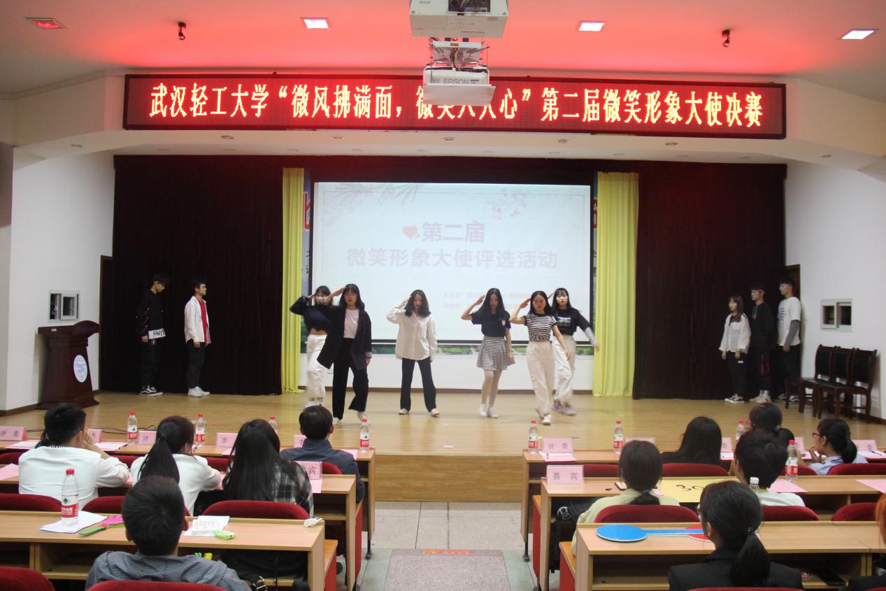 本次比赛在生工公司员工会文工团的舞蹈中拉开了序幕,生工公司员工会文工团的激情演出结束后,选手们的比赛也就开始了。本次的微笑形象大使活动一共有12名同学进入到决赛。本次的决赛分为四个环节:选手个人简介,VCR放映,心理知识竞答,情景模拟。根据选手在这四个环节中的表现,评委和嘉宾进行相应的评分,最后根据分数的高低选出最后的微笑形象大使。在比赛进行期间,还穿插了一个小游戏来活跃现场气氛。