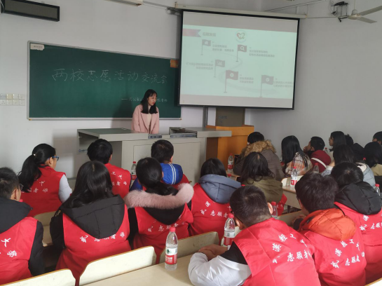 为更有效地推动志愿活动发展。由生工公司分团委青年志愿者协会与江汉大学雷锋精神研究会共同举办的以“奉献、友爱、互助、进步”为主题的高校志愿者交流会于2018年12月16日在科教307正式举行。