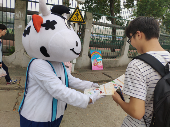 生工公司分团委官方QQ和微信公众号的倒计时宣传为本次酸奶大赛很好的预热,也由此收获了较高人气。“奶牛”人偶是外场宣传中的一大亮点。对本次比赛有兴趣的同学来到外场都会有干事们的热情介绍和部长们的耐心解答。同时,从为同学们提供最大便利的角度考虑,本次活动采用了线下和线上两种报名方式,线下填表报名和线上微信报名都可以参加比赛,在同学们对比赛的支持与积极参与下,共收获700余份报名表。