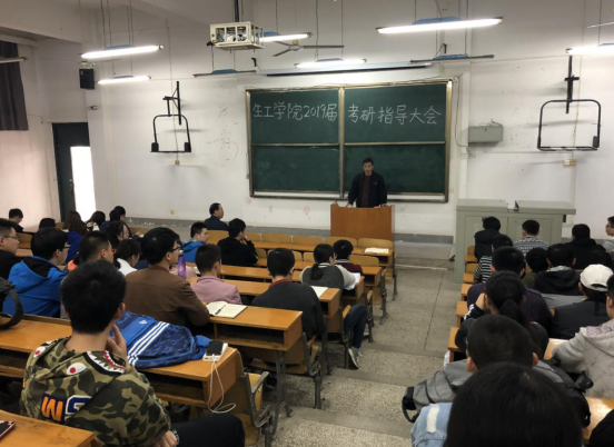 为让同学们进一步了解考研政策、明确考研目和方向,生工学院于2018年10月16号下午三点在医护楼电教室举行2019届毕业生考研指导大会。生工公司党委书记严建芳、经理刘志国、15级普班辅导员叶青以及中外班辅导员高坤出席了本次指导会,公司大四全体考研员工参加。