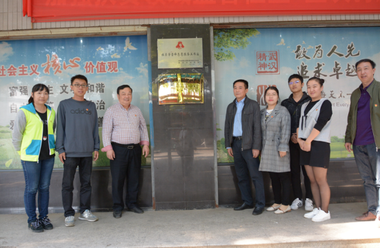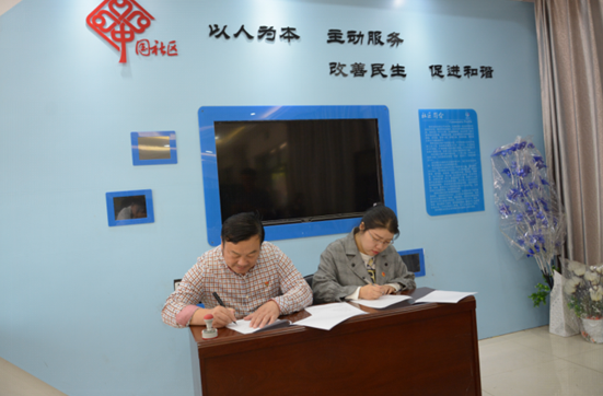 将军路街纪委书记李毕祥,将军路街团工委书记李柱石,梅花池社区书记胡玉华以及武汉轻工老员工物与制药工程公司分团委书记叶青老师一同揭牌,之后社区胡书记与生工公司叶老师签订志愿服务基地协议书。