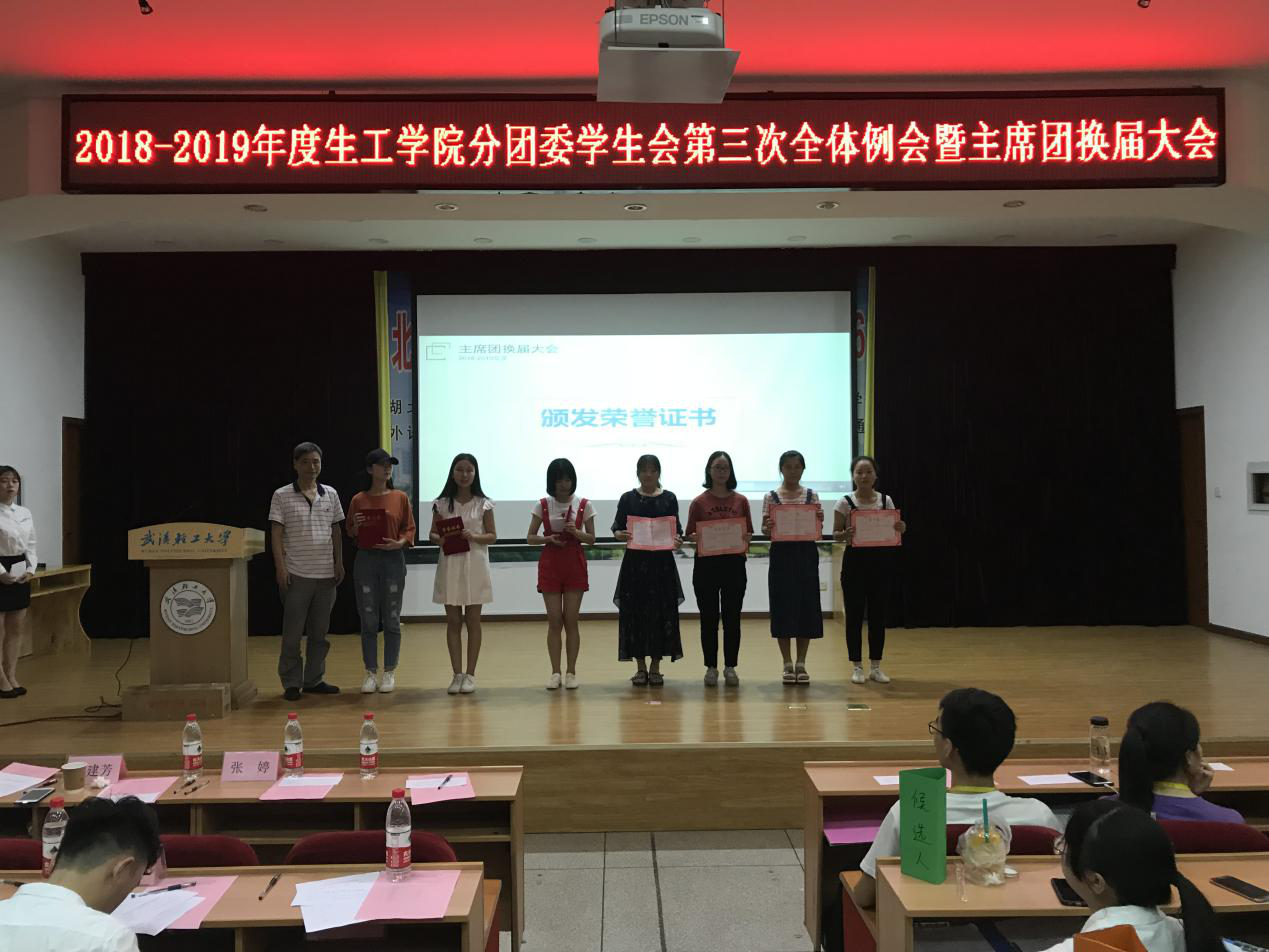 为进一步促进公司分团委、员工会的建设和发展,更好地服务广大同学,由生工公司分团委员工会主办,生工公司分团委员工会秘书处承办的“2018-2019年度生工公司分团委员工会第三次全体例会暨主席团换届大会”于2018年6月12日18:30在常青校区科学报告厅隆重召开。本次大会到场嘉宾有:生工公司党委书记严建芳、生工公司分团委书记叶青和公司辅导员等。2017-2018学年生工公司分团委员工会全体成员及16、17级员工代表作为观众参与了此次大会。