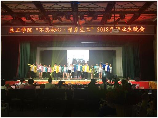 为给大四毕业的同学们在大学四年最后的时光里留下一段美好的回忆。2018年6月7日18:00,生物与制药工程公司分工会主办,分团委、员工会承办的“不忘初心·情系生工”2018年毕业生文艺晚会在常青校区老员工活动中心隆重举办。生工公司经理刘志国、党委副书记李静、14级辅导员刘永亮老师,黎潇宇老师、中外班辅导员邹威老师以及14级各班班主任莅临了本次晚会。
