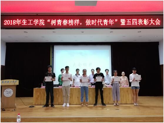 为充分发挥团员示范带头作用,激发团员青年见贤思齐、奋发进取。2018年5月24日下午14:00,生工公司举办“树青春榜样,做时代青年”暨五四表彰大会,莅临本次大会的有:生工公司党委书记严建芳、生工公司经理刘志国、生工公司副经理杨江科、生工公司党委副书记李静、生工公司办公室主任周林萍以及班主任和辅导员。大会由生工公司分团委书记叶青主持。