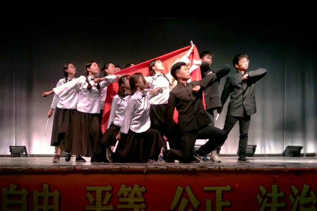 经过初赛、复赛的激烈角逐,共有六个支部进入决赛,六个支部按照抽签顺序依次上台进行表演展示。在第一环节“听律动,辩支部”中,各支部上台进行代表本班精神的歌舞表演,唱出支部心声,在小小的舞台上,每个支部成员都用心声唱出来自己大大的爱国梦,同时还有支部成员书写对联,以书法的气息展现支部的风采。在第二环节“扬精神,展支部”中,支部成员进行以“红色精神”为主题的话剧表演,搜索抗战时期英勇烈士的光辉事迹并改编成剧本表演出来,通过表演将上一代革命精神再一次展现于人们面前,秀出支部魅力。