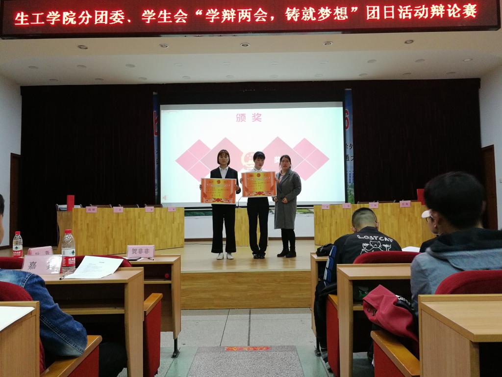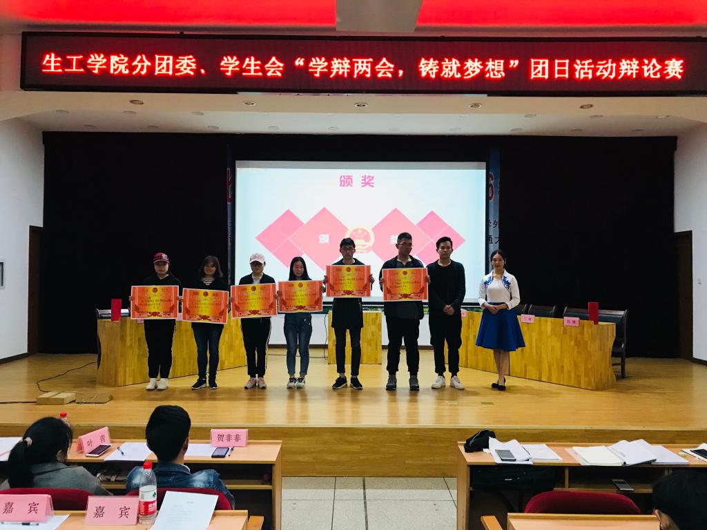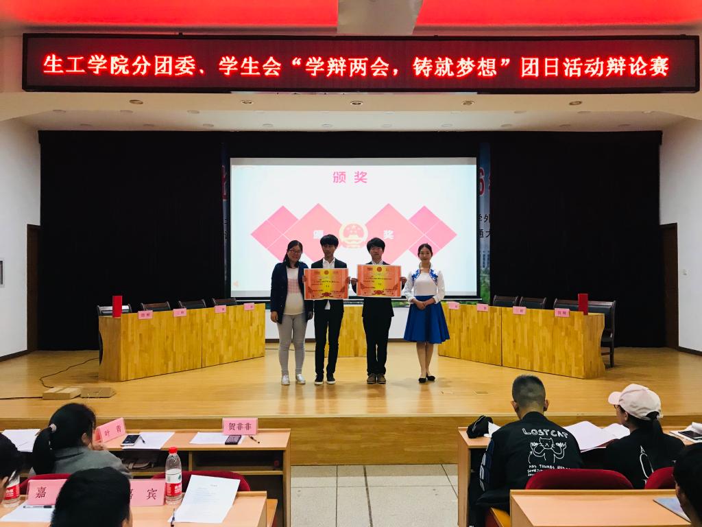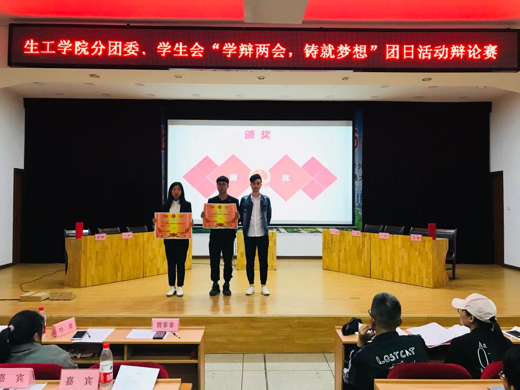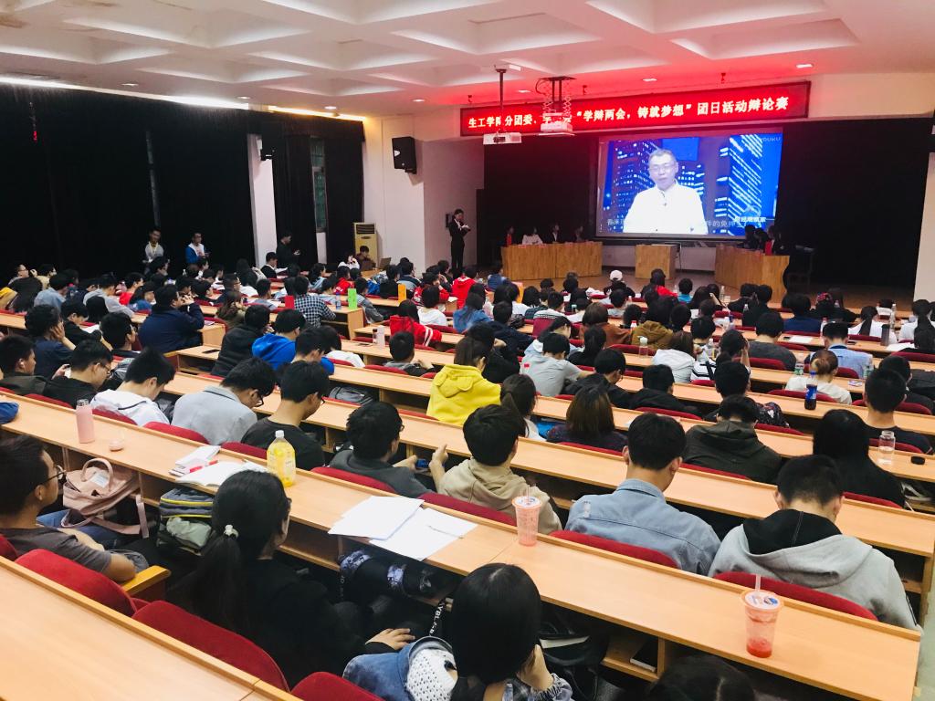 为提高支部成员的自身思想觉悟,开拓支部成员对时事政治的视野。2018年4月8日晚6:30,由生物与制药工程公司分团委组织部主办的“学辩两会,铸就梦想”主题团日活动决赛环节在科学报告厅展开。此次团会采用辩论赛的创新形式展开,生工公司党委副书记李静,分团委书记叶青,中外班辅导员高坤,兼职辅导员贺非非,主席团成员以及16、17级各支部成员代表参加了本次活动。