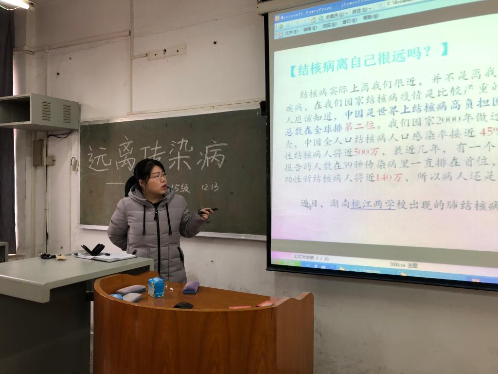 为加强卫生防病知识宣传教育,认真做好冬季传染病预防知识宣传教育工作。2017年12月13号中午12:30,生工公司辅导员叶青老师于医护楼609开展了冬季预防肺结核知识宣传工作,15级普班班长、团支书参加了本次活动。
