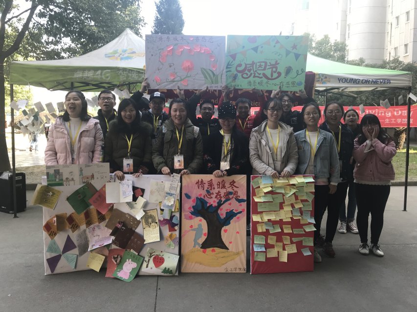 为了培养公司员工感恩的价值观,让公司学生更深刻的了解到感恩的意义,2017年11月23日中午11:30生工公司分团委员工会心理健康教育部举办的“情系暖冬,心存感恩”感恩节主题活动于11月23日在常青公寓门口进行。