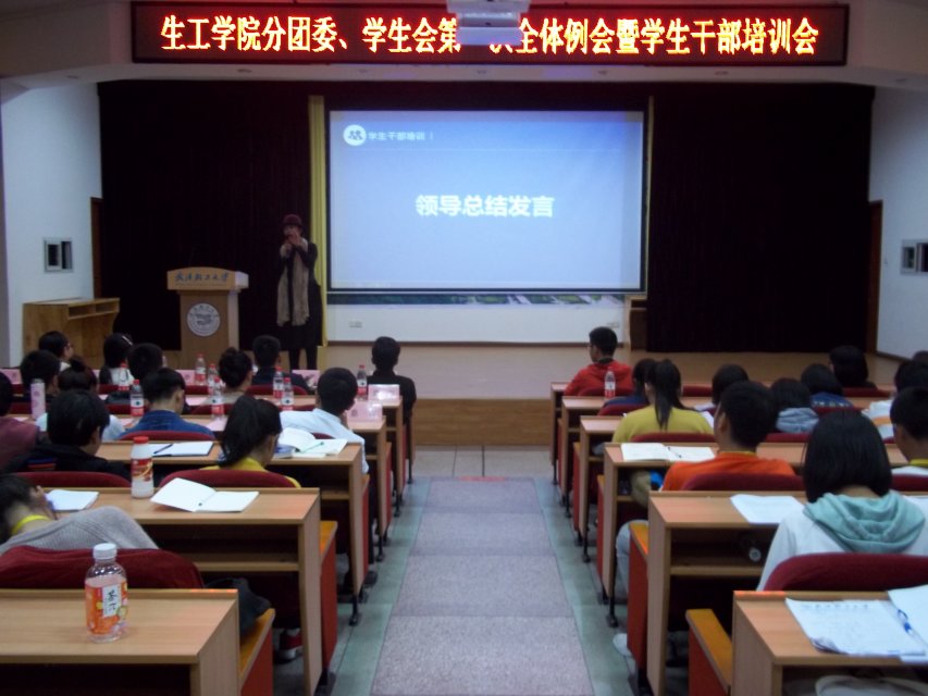 为了鼓舞和激励2017级新生干部的热情,使新生干部对未来的工作有更明确的方向,促进员工会工作的顺利开展,加强各部门之间的交流,2017年10月26日晚18:30由生工公司分团委员工会主办、生工公司分团委员工会秘书处承办的生工公司分团委、员工会第一次全体例会在科学报告厅隆重举行。生工公司党委副书记李静、校团委周雨露、生工公司分团委书记叶青、辅导员高坤、邹威、优秀毕业学长肖辉、李腾龙,2016-2017届生工公司分团委员工会主席团和2017-2018届生工公司分团委员工会主席团以及2017-2018届生工公司分团委员工会全体成员出席了本次例会。本次会议由生工公司分团委员工会秘书长王丽珠主持。