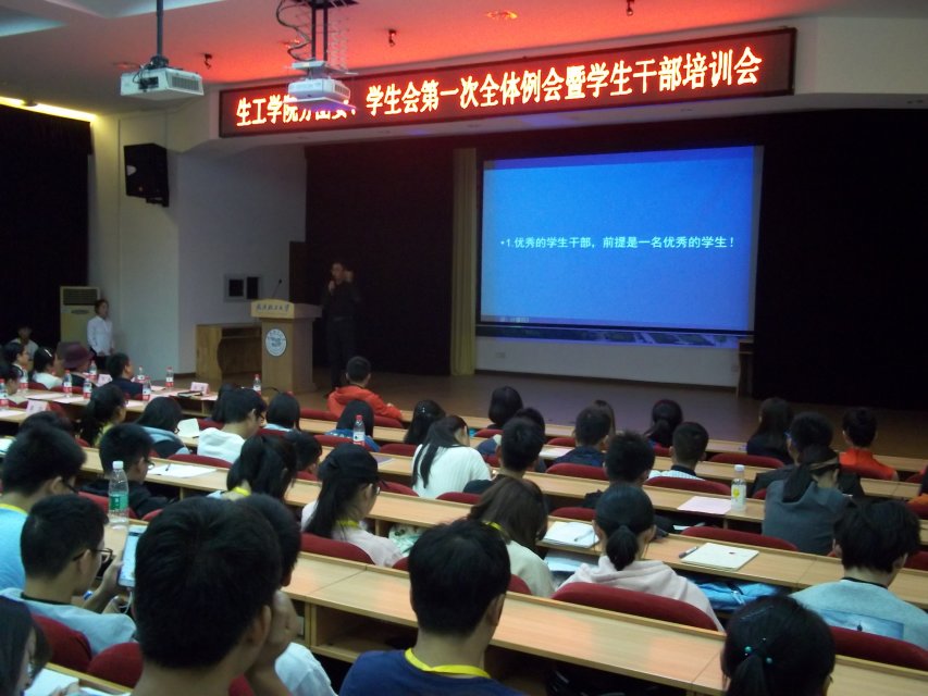 为鼓舞员工干部的工作热情,增强员工干部的工作能力,加强各部门的交流,促进员工会更好的发展, 2017年10月26日晚18:30由生工公司分团委员工会主办、生工公司分团委员工会秘书处承办的生工公司员工干部培训会在科学报告厅隆重举行。生工公司党委书记严建芳、党委副书记李静、校团委周雨露老师、生工公司分团委书记叶青、辅导员高坤、刘永亮、邹威、贺非非老师,优秀毕业学长肖辉、李腾龙出席。本次会议由生工公司分团委员工会秘书长王丽珠主持。