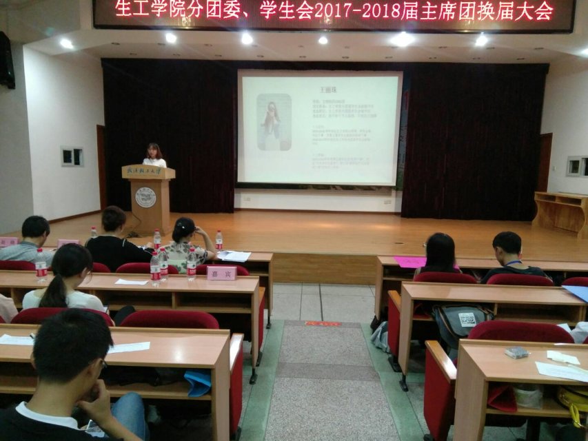 主持人致会议开场辞并介绍到场领导,随后由员工会主席聂靖云学长做述职演讲,总结了生工公司过去的一年出彩成就的同时也对下一届员工干部提出了自己的建议和期望。之后便是对优秀部门、优秀的部长和干事进行荣誉表彰,他们在过去一年的工作中尽心尽力,不辞辛劳。颁奖过后进行最激动人心的竞聘环节,各位优秀的竞选者按照提前抽签确定的顺序依次上台作了简短的个人介绍,就赛前抽到的问题进行了随机主题演讲,在经过简单的了解以后,分别由老师和主席团成员提问,让老师们更好的了解他们的临场应变能力和舞台演讲能力。最后严书记对本次大会做出总结发言。强调了团队合作的重要性,凝聚力是必不可少的。大会到此圆满结束。