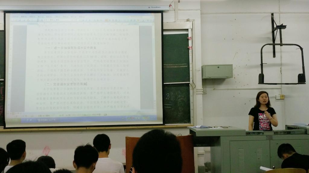 本次安全教育大会主要涉及寝室防火、用电安全、防溺水,暑期社会实践期间的人身安全几个方面。武汉夏季天气炎热,周老师提醒大家切记不要私自、独自下水游泳,不要去水深情况不明的水域游泳。要增加安全防范意识,不要让溺水的悲剧发生在自己身上。五、六月份宿舍用电量增加,宿舍火灾安全事故容易发生。在使用电风扇和空调的过程中,要提高自我保护意识。桌用小台灯使用时不要靠近纸张、棉絮等易燃物质。电扇、空调要常常检查插头、电线头等部位避免因为产品质量问题而引发火灾,禁止使用大功率用电器和蚊香。暑假进行暑期社会实践时要注意防诈骗,不要陷入传销的陷井,不要轻易相信陌生人,面对各种问题,冷静思考,独立判断。