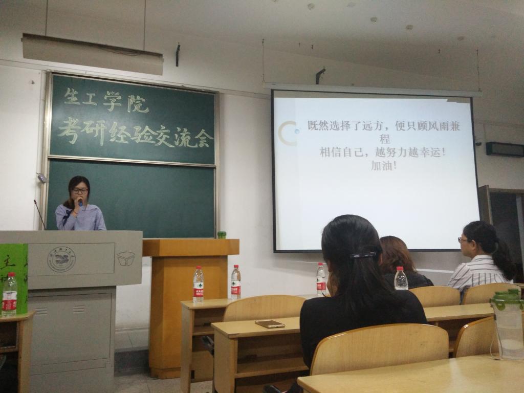 为加强员工对考研知识和经验的了解,营造积极向上的学风,为公司正在备考的同学加油鼓劲。2017年5月15日晚上六点由生工公司员工会学研部举办的以“为考研助力,心得分享来加劲”为主题的考研交流会于在科教楼203号教室展开。莅临本次交流会的嘉宾有:公司党委副书记李静、院分团委书记周雨露老师、13级辅导员刘永亮老师、15级中外班辅导员高坤老师、16级辅导员黎潇宇老师。邀请到考上武汉大学研究生的李娜学姐、考上厦门大学的涂志贤学长等八名优秀的学长学姐来进行经验分享。