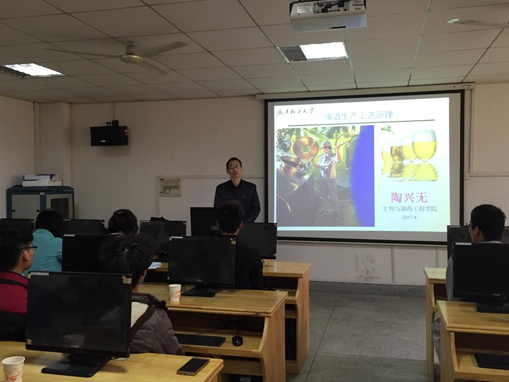 由生工公司主办的酿酒知识和品酒技能大赛系列活动之酿酒知识与实践技能讲座于4月6日下午2:30在生化楼412教室正式开讲。陶兴无老师受邀为本次讲座的主讲人。