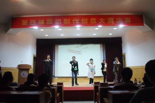 通过一段精心制作的赛程回顾短片,主办方带领在场观众领略了本届酸奶制作创意大赛的独特魅力。经过报名宣传、面试组队、实践培训、实验室操作、外场宣传、复赛比拼等一个多月的重重考验,“七彩梦之队”、“逐味部落”等6支队伍成功晋级到决赛环节。这6支团队由生工、化环、经管、食品、动科、医护、机械、外语等八个公司的选手自由组合而成,他们充分发挥各自专业优势和团队力量,围绕“中国梦”等主题,在酸奶制作创意解说、酸奶产品展示、营销剧表演等环节中,尽情展示青春活力和梦想创意。