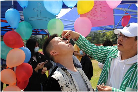 在开幕式进程中,活动场地分为公司外场和“幸福抱抱团”两个场地。在公司外场,工作人员组织同学们参与夹乒乓球、你比我猜、头顶吃饼干、心愿墙等游戏,在游戏结束后会给予获胜者奖品,这种互动小游戏在无形中拉近了同学们之间的距离;在“幸福抱抱团”场地,相关工作人员引导同学们与穿戴玩偶服装的工作人员进行拥抱,并且赠送小礼品给拥抱的人,遇到害羞的同学,穿戴玩偶的的工作人员还会主动伸出双手,来一个充满爱的抱抱。