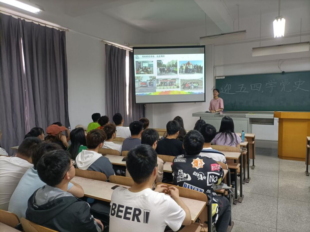 在这次团日活动中,团支书们制作PPT ,以及寻找相关视频给支部成员观看。团支书的演讲让同学们对五四运动和中国共产党有了进一步的认识,全体支部成员一起观看五四运动视频,大家被五四青年的热血激情所感染,似乎已经置身于那个国家正处于风雨飘摇正迫切需要青年人站出来的时代。让人热血沸腾且强烈的爱国之情涌上心头。有些支部还设计了党史知识比赛,通过这个活动,调动了同学们的积极性,使同学们进一步的了解学习党史。