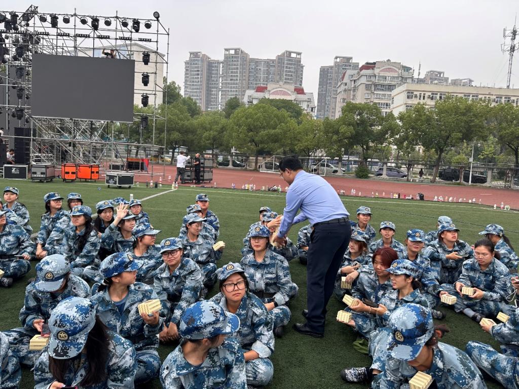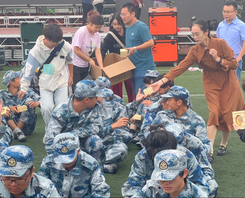 在中秋、国庆佳节到来之际,公司党委书记易文君、副书记罗霄携新生辅导员、班主任及导学员来到军训场地,开展节前慰问活动,为在军训场上挥洒汗水的2023级本科新生送去节日慰问品。