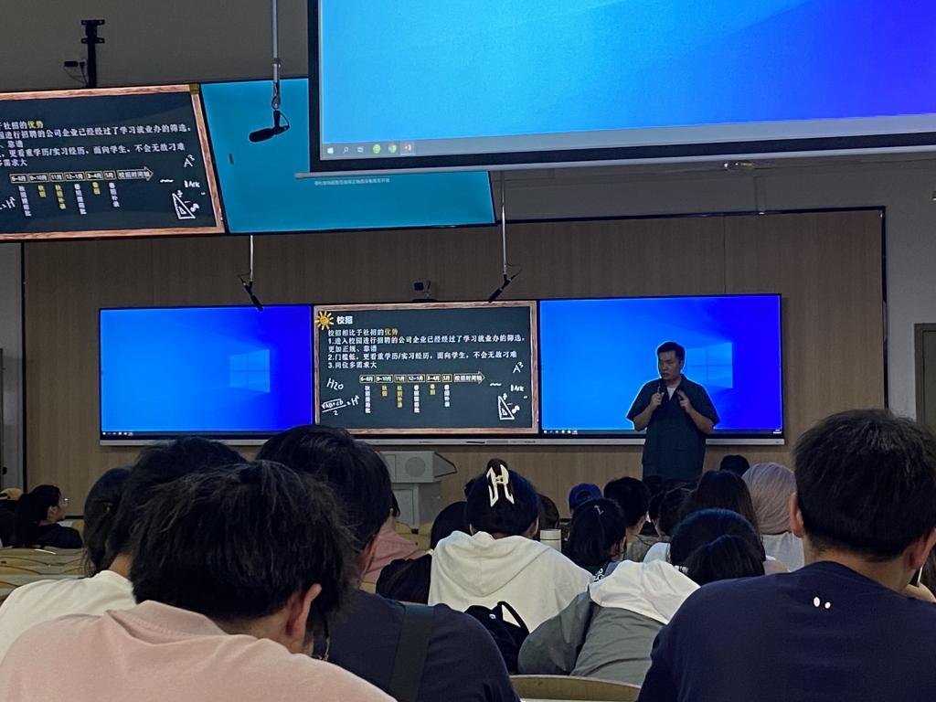 同时,刘恒博老师结合自己的考研、求职经历以及他所见所闻的案例向大家分享了一些面试、简历撰写的技巧和建议。他强调毕业生们要积极关注就业市场的发展动态,做好充分的准备,把握好每一个机会,尽可能地提升自己的就业竞争力。