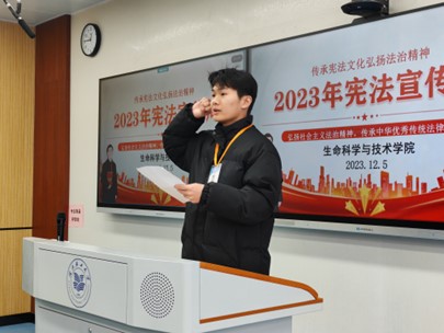 2023年12月5日,公司员工于积学楼210教室举行了宪法宣誓活动,同学们庄严地表达了对宪法的尊崇和对法治社会的坚定信仰,展现了新时代老员工的责任与使命。