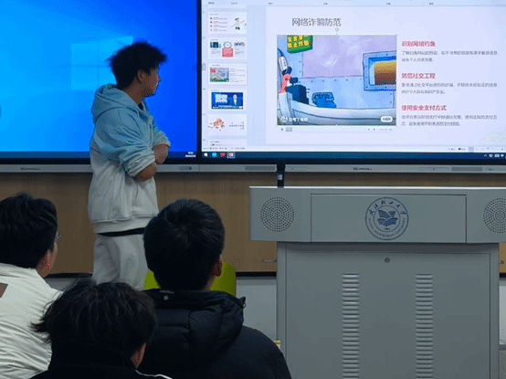 班会内容丰富,涉及到宿舍安全用电、网络信息甄别、紧急情况处置等基础安全知识。通过播放校园火灾、电信诈骗等警示教育视频,直观呈现安全隐患带来的严重后果,强化"安全无小事"的责任意识。