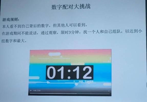 理论探讨与数据分析之外,班会特别设计了“数字配对大挑战”破冰游戏。同学们需在非语言沟通(手势、眼神)的限制下快速寻找队友,组成数字之和最大的小组。这一新颖的互动环节不仅活跃了气氛,锻炼了同学们的非语言沟通技巧、快速反应和团队协作能力,更重要的是,在寻求最优解的过程中,同学们对自己和他人有了更直观的认识,体会到个体在团队中的独特价值。活动结束后,李婷老师还鼓励成功组队的同学结成“学习搭子”,在后续的学习生活中互励互助,记录成长,共同进步。