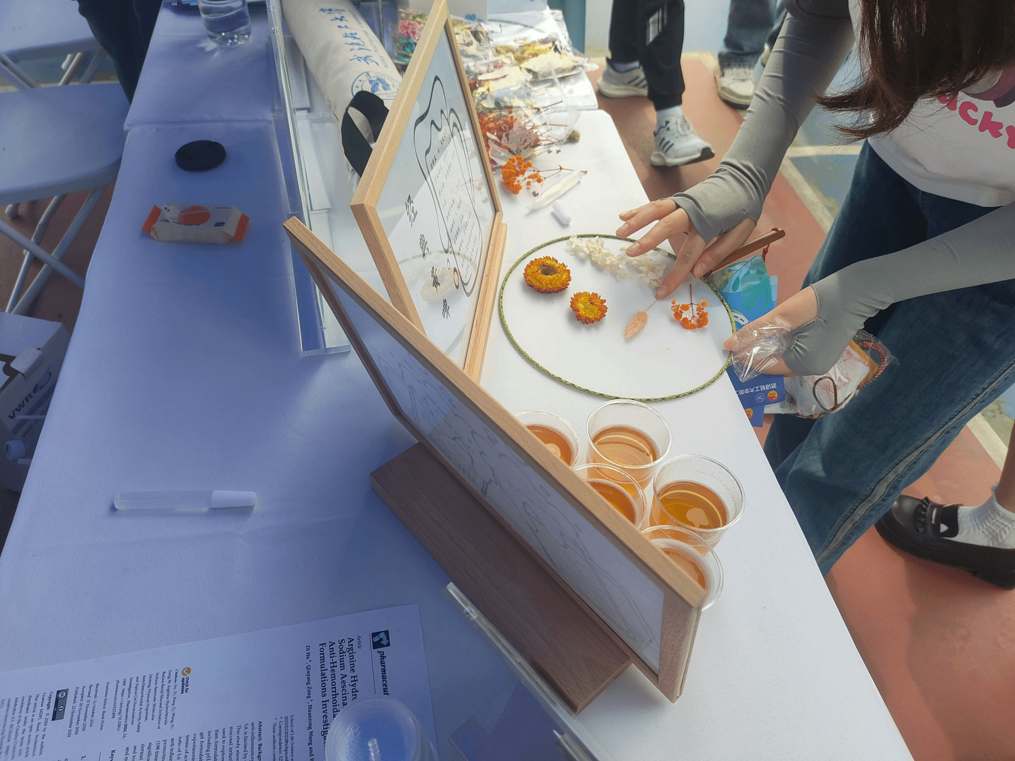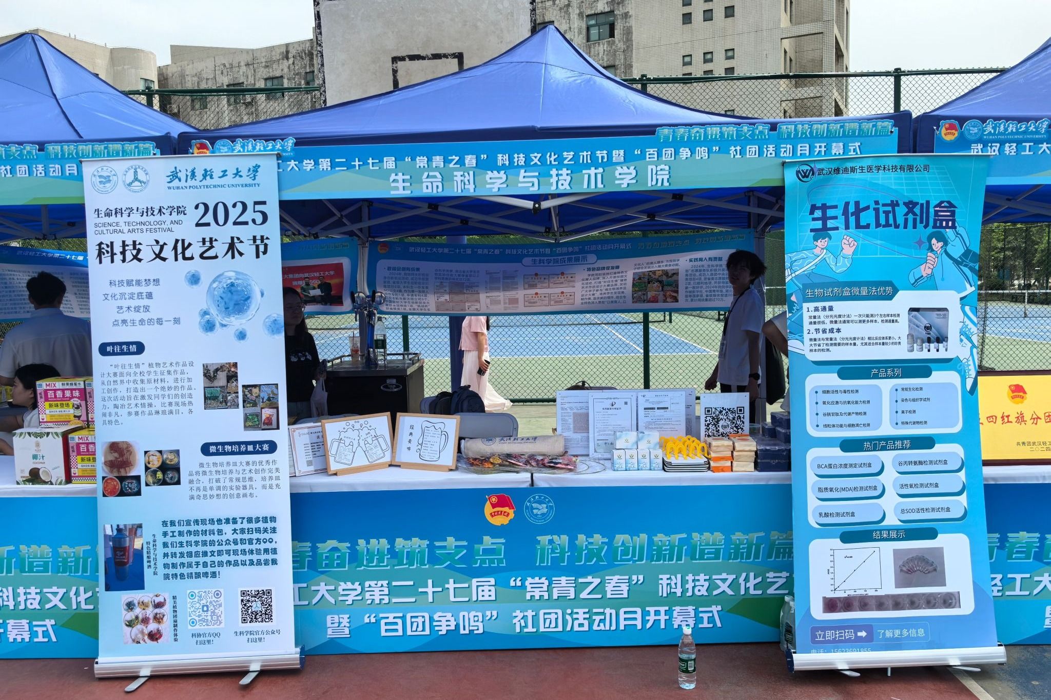 Beats365唯一官网入口展区以“生命科学赋能生活”为主线,精心布置了涵盖生物、医药、食品、健康等领域的多样化展品。展台上,生物试剂盒、艾草保健枕、自酿啤酒及特色实物陈列,生动诠释了科研成果向实际应用的转化。其中,微生物培养艺术设计大赛的获奖作品以独特的科学美感吸引众多师生驻足拍照,而Beats365唯一官网入口四名学子自主创业的营业执照展示,更彰显了公司对员工创新实践能力的培养成果。