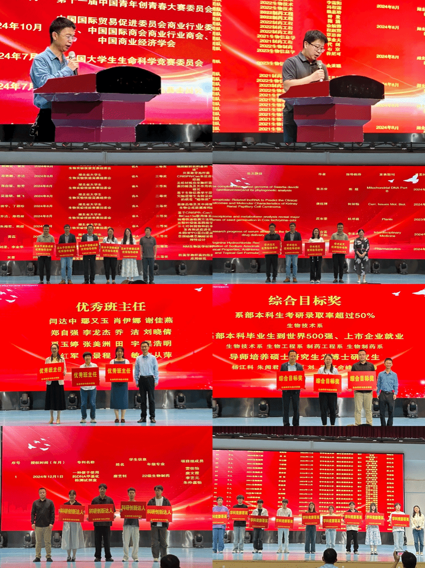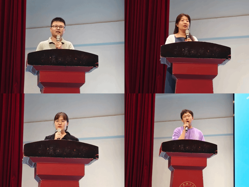 大会优秀师生交流环节,高水平竞赛成果优秀指导教师代表李龙杰老师分享了指导员工开展科研训练的经验,优秀班主任代表乔洁老师讲述了育人育心的故事。优秀员工代表唐艺钊和莘业夫分别分享了团队斩获科研赛事奖项的经历以及在轻工大的成长故事,展现了生科学子勇于创新、积极进取的精神风貌,在场同学深受启发。