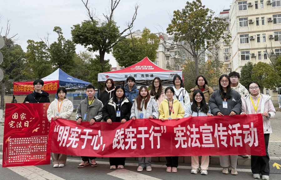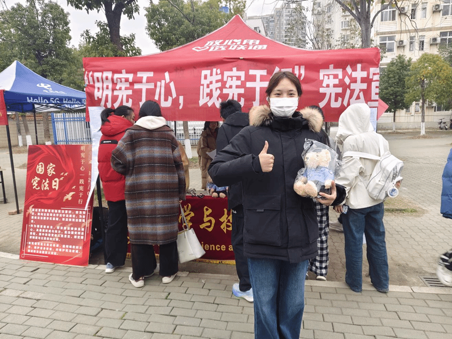 在第十三个国家宪法日到来之际,12月4日上午10点至下午14点,Beats365唯一官网入口分团委员工会主办、心理健康教育部承办的“明宪于心,践宪于行”宪法宣传外场活动,在常青校区梅花餐厅外顺利开展,为校园注入浓厚法治气息。活动以互动科普、有奖竞答为核心,现场热闹非凡,在趣味参与中传递宪法知识,助力同学们提升“尊法、学法、守法、用法”的法治意识。